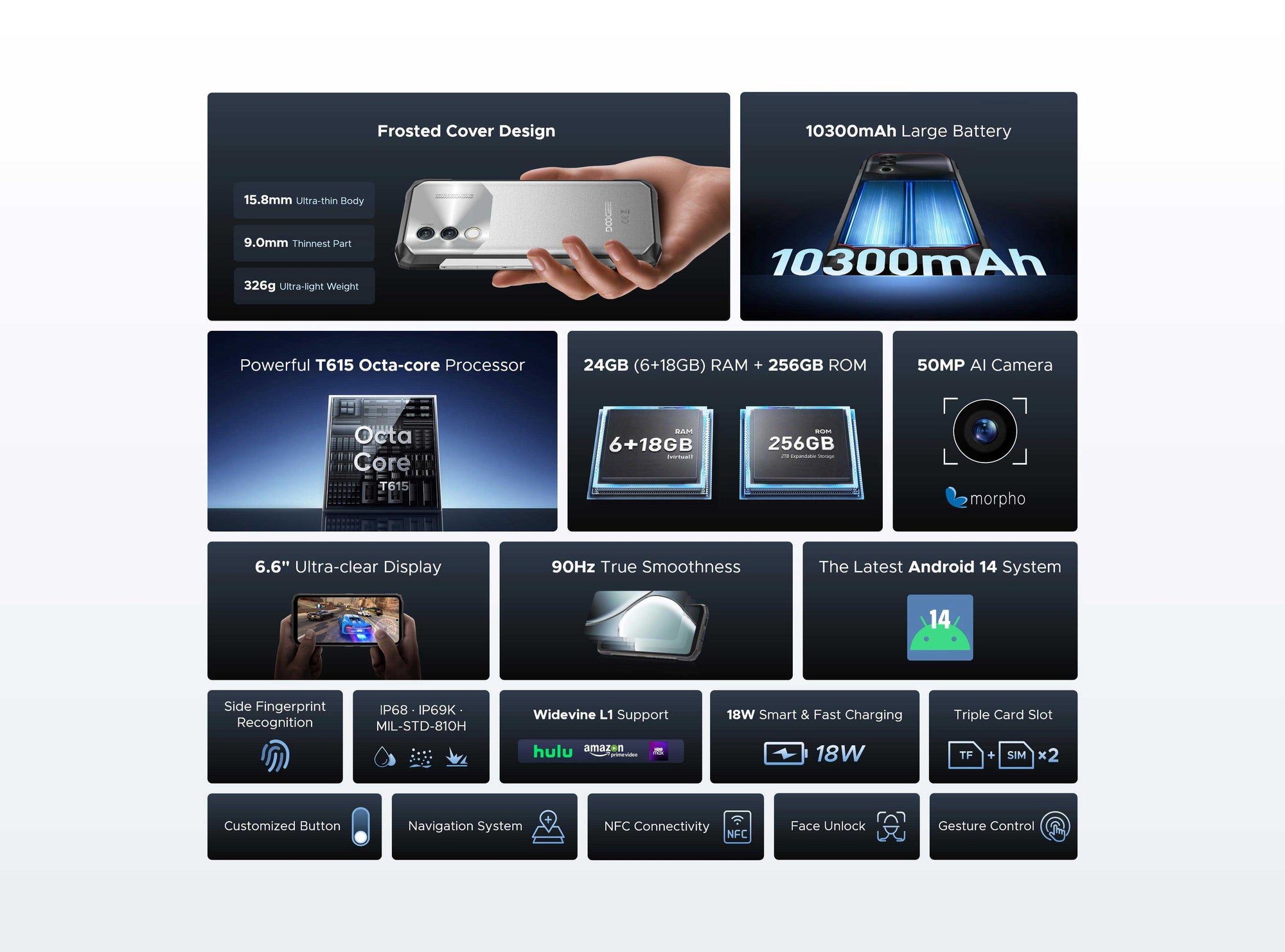 | Хамгаалалт | Corning Gorilla Glass, IP68, IP69K, MIL-STD-810G |